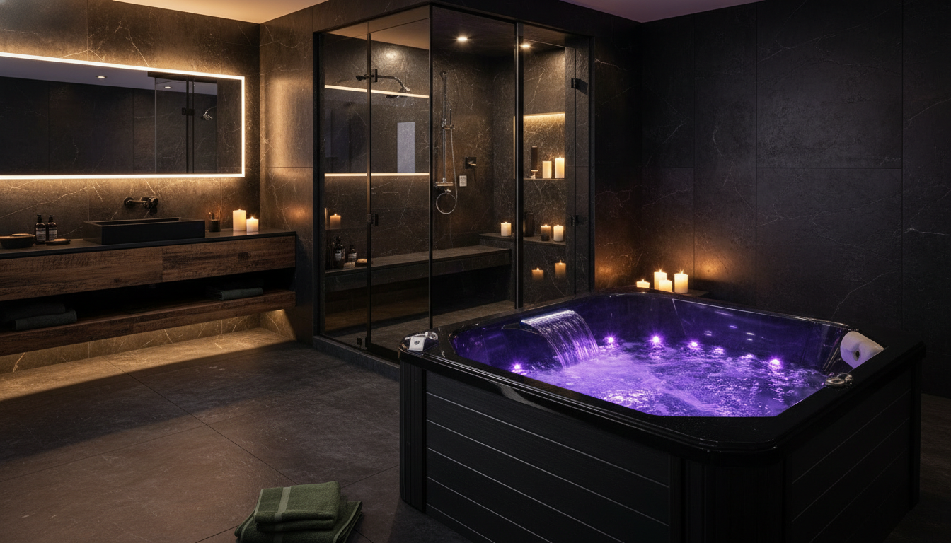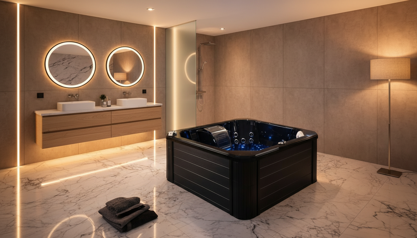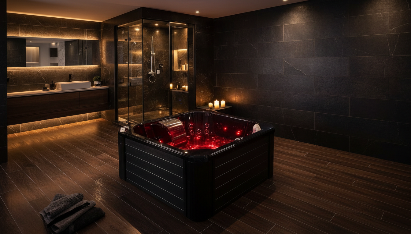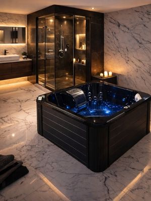 The AquaRay Luxury Whirlpool Bathtub by Cesmar Italian is a premium wellness bathing solution designed to bring a five-star spa experience into modern bathrooms. Crafted with a sleek high-gloss black finish and an ergonomic rectangular form, AquaRay features advanced hydromassage jets, ambient LED chromotherapy lighting, and an integrated control system for ultimate relaxation and comfort. Built from durable, high-quality acrylic with a reinforced structure, this designer bathtub combines elegance, durability, and performance. Ideal for luxury residential spaces, boutique hotels, and high-end interior projects, the AquaRay bathtub is the perfect choice for modern whirlpool bathtubs, luxury spa tubs, Italian bathroom fittings, and premium wellness bathing solutions.