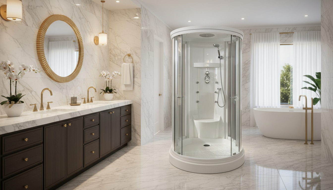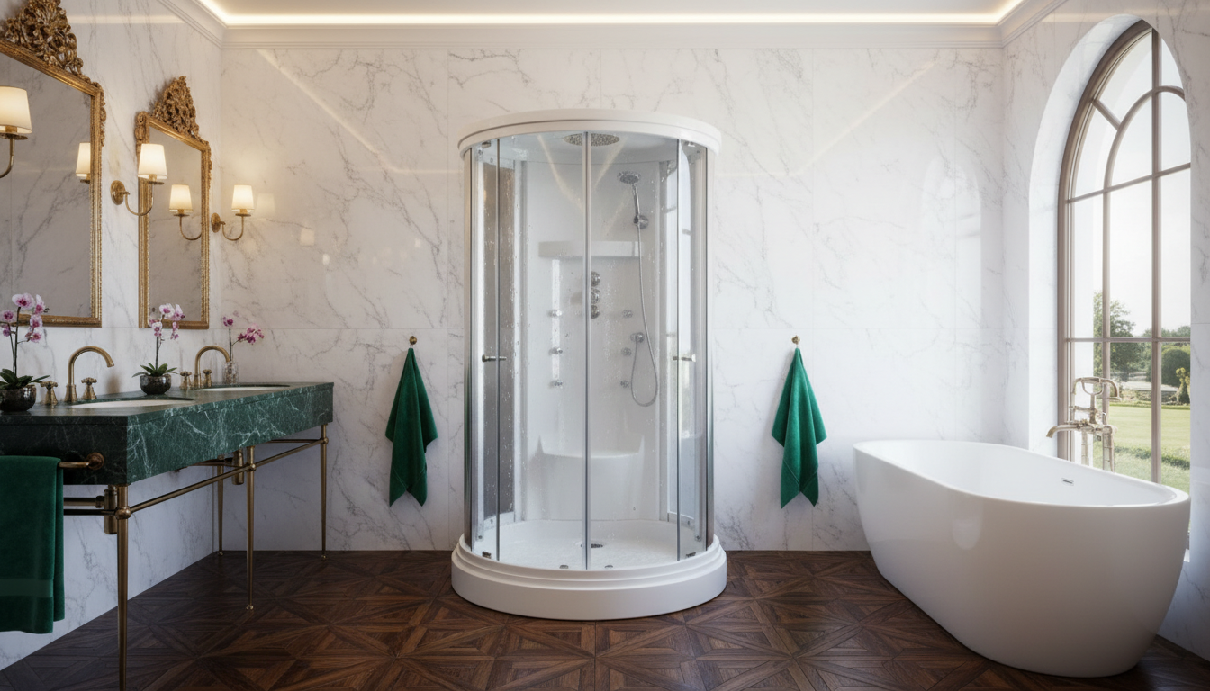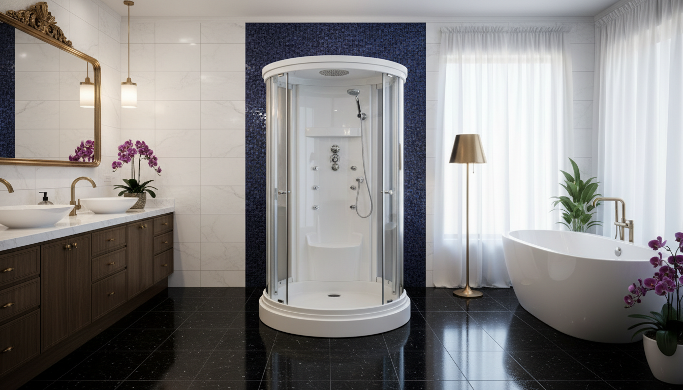 Modena by Cesmar Italian is an elegant luxury steam shower cabin crafted to bring refined Italian design and advanced wellness into modern bathrooms. Featuring a sleek 15 cm grey low tray, 5 mm transparent toughened glass, and a painted grey 4 mm back wall, Modena offers exceptional durability with a clean, contemporary aesthetic. The grey glass roof, black aluminum profiles, and smooth adjustable rollers enhance both style and performance, while 6 hydromassage jets, a soothing tropic rain shower, and an intuitive digital control panel deliver a complete spa-like experience. Finished with LED lighting, built-in radio, ventilation fan, and a glass shelf, this premium steam shower enclosure is ideal for luxury homes, hotels, and wellness spaces, available in 1200×1200 mm and 1500×1500 mm sizes for flexible installation.