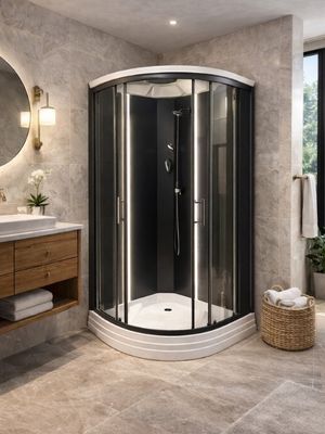 The Platinum Steam Shower Enclosure by Cesmar Italian is a premium luxury bathroom solution designed to deliver a modern spa-like experience at home. Featuring a sleek grey low-profile tray, transparent toughened glass, black aluminium profiles, and an elegant grey glass central panel, this shower enclosure blends contemporary design with advanced functionality. Equipped with 6 hydromassage jets, a tropic rain shower, integrated lighting, ventilation fan, control panel, radio, and smooth adjustable rollers, Platinum offers both comfort and performance. Ideal for high-end residential and luxury interior projects, this Italian-style steam shower enclosure is crafted for durability, space efficiency, and sophisticated aesthetics, making it a perfect choice for modern bathrooms seeking premium shower cabins, designer shower enclosures, and luxury wellness solutions.